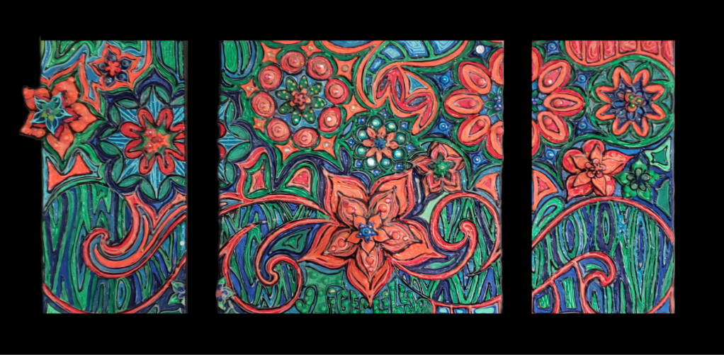 Fluorescent oil painting with dimensional mixed-media accents and glow-in-the-dark details. I mix all paints myself from high quality fluorescent powder pigments. All 3-Dimensional details are crafted with durability and longevity in mind and are not fragile or at risk of breaking easily.